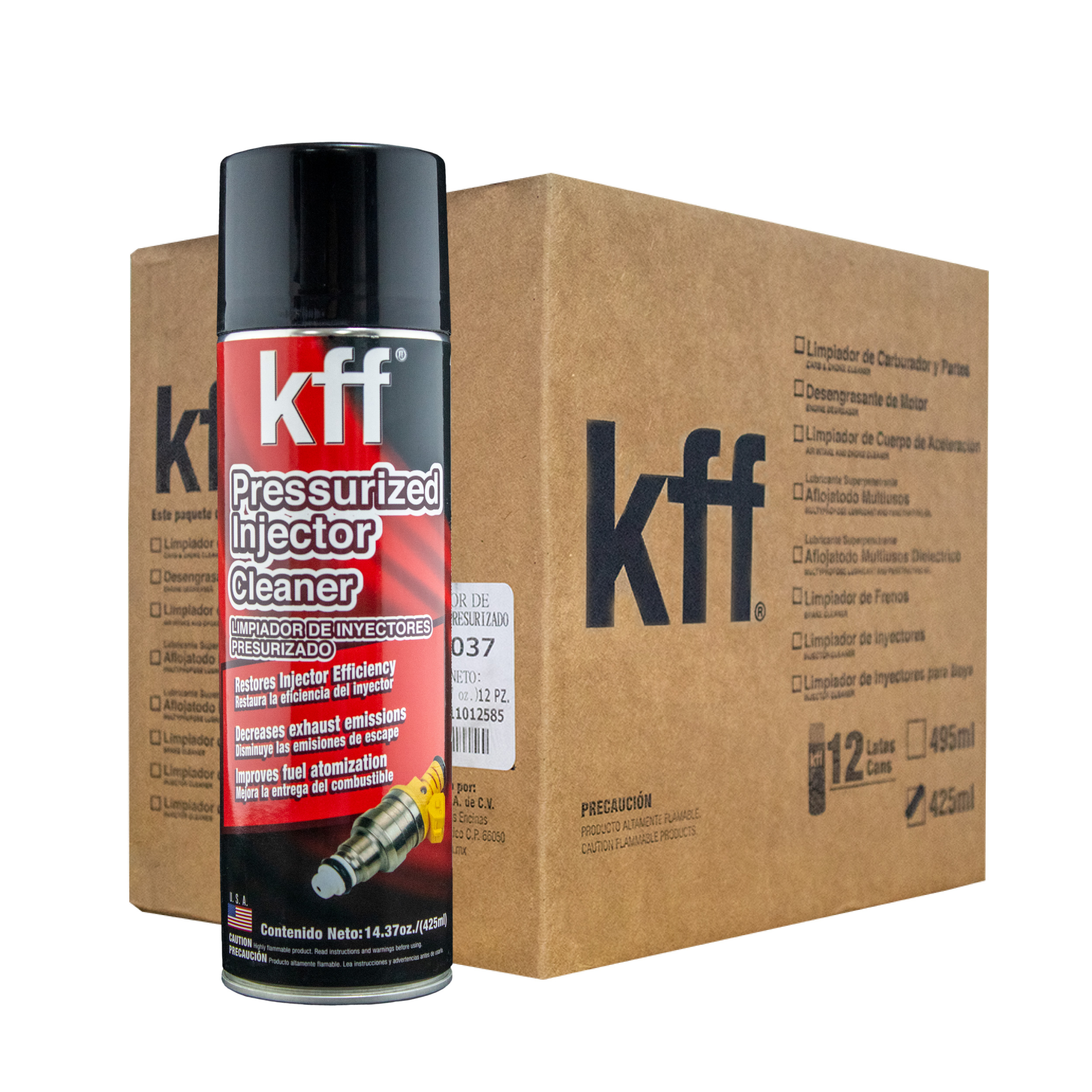 El Limpiador de inyectores presurizado Kff está especialmente diseñado y formulado para proporcionar una limpieza instantánea. Remueve gomas, barnices y depósitos de carbón de los inyectores, válvulas de admisión y cámara de combustión. Restaura el patrón de rociado de los inyectores. Mejora el trabajo del motor, aumenta la potencia y reduce los contaminantes.PRESENTACIONES