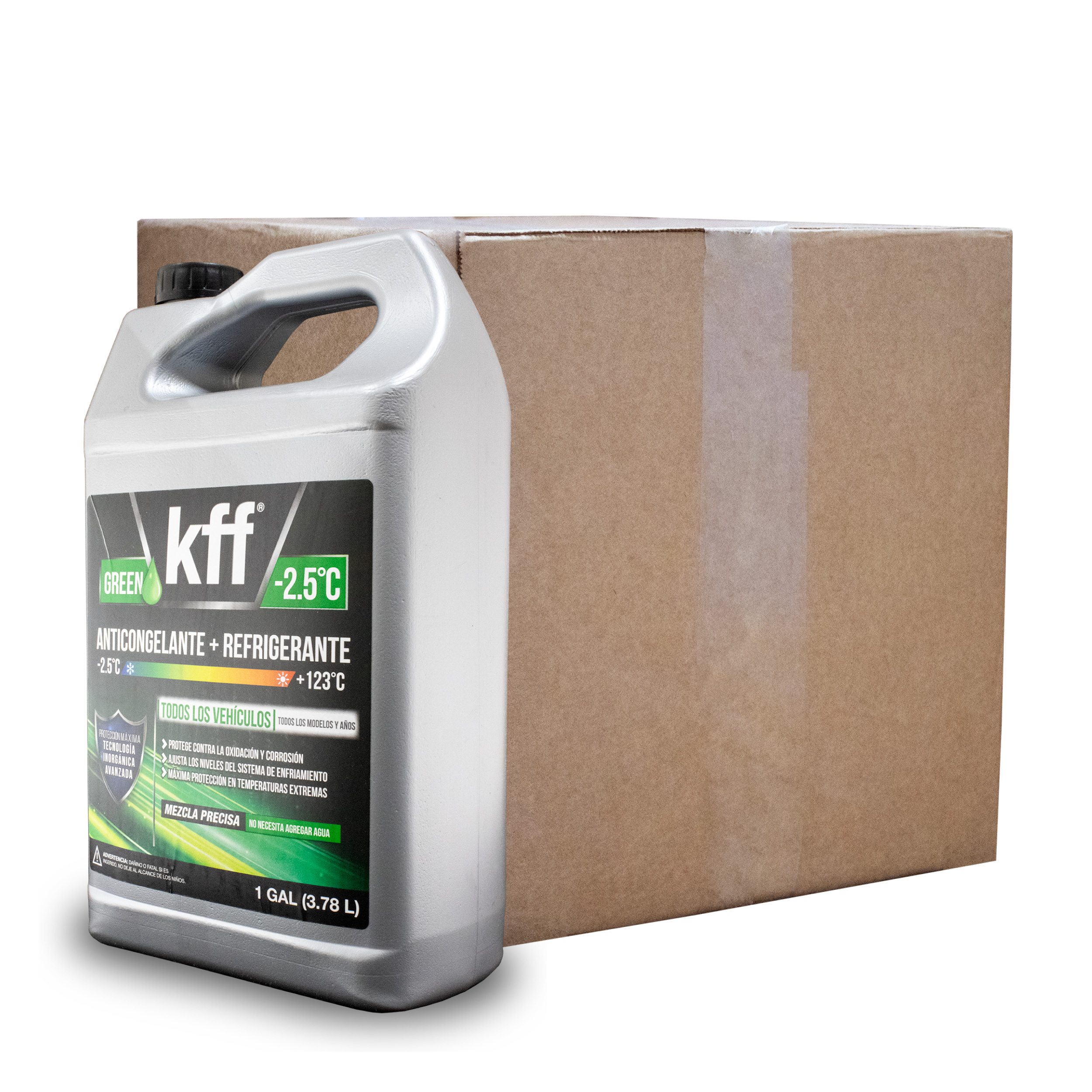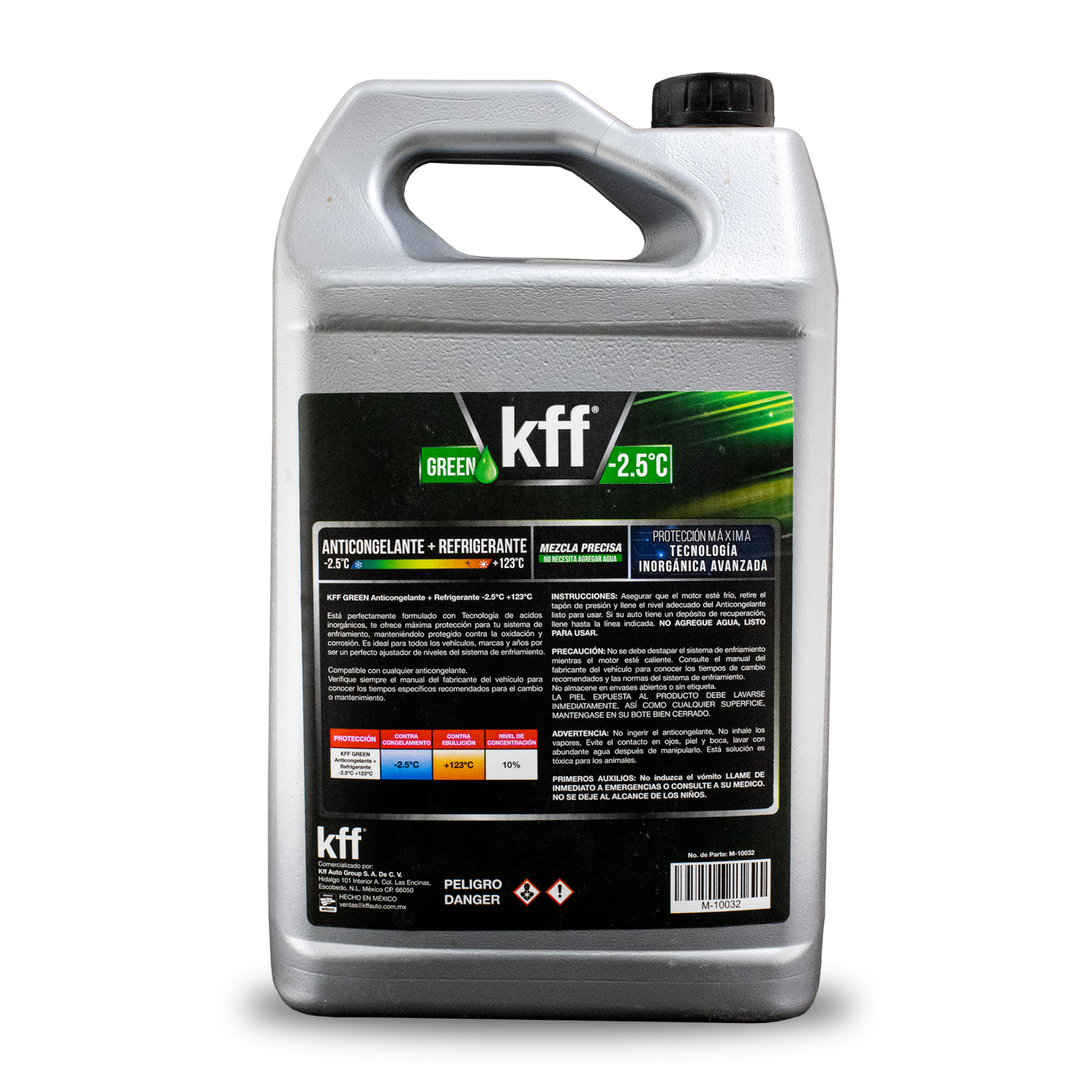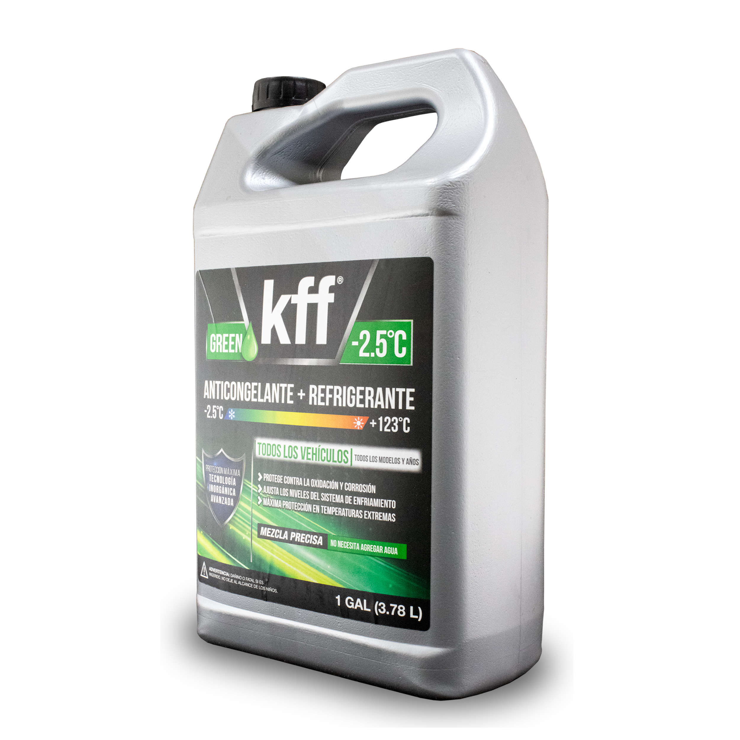 Diseñado para mantener su motor en óptimas condiciones, el Anticongelante Verde KFF proporciona una barrera eficaz contra el sobrecalentamiento, la oxidación y la formación de incrustaciones. Su fórmula premezclada y lista para usar es ideal para cualquier tipo de vehículo, brindando protección duradera en condiciones de conducción urbanas y en carretera.
