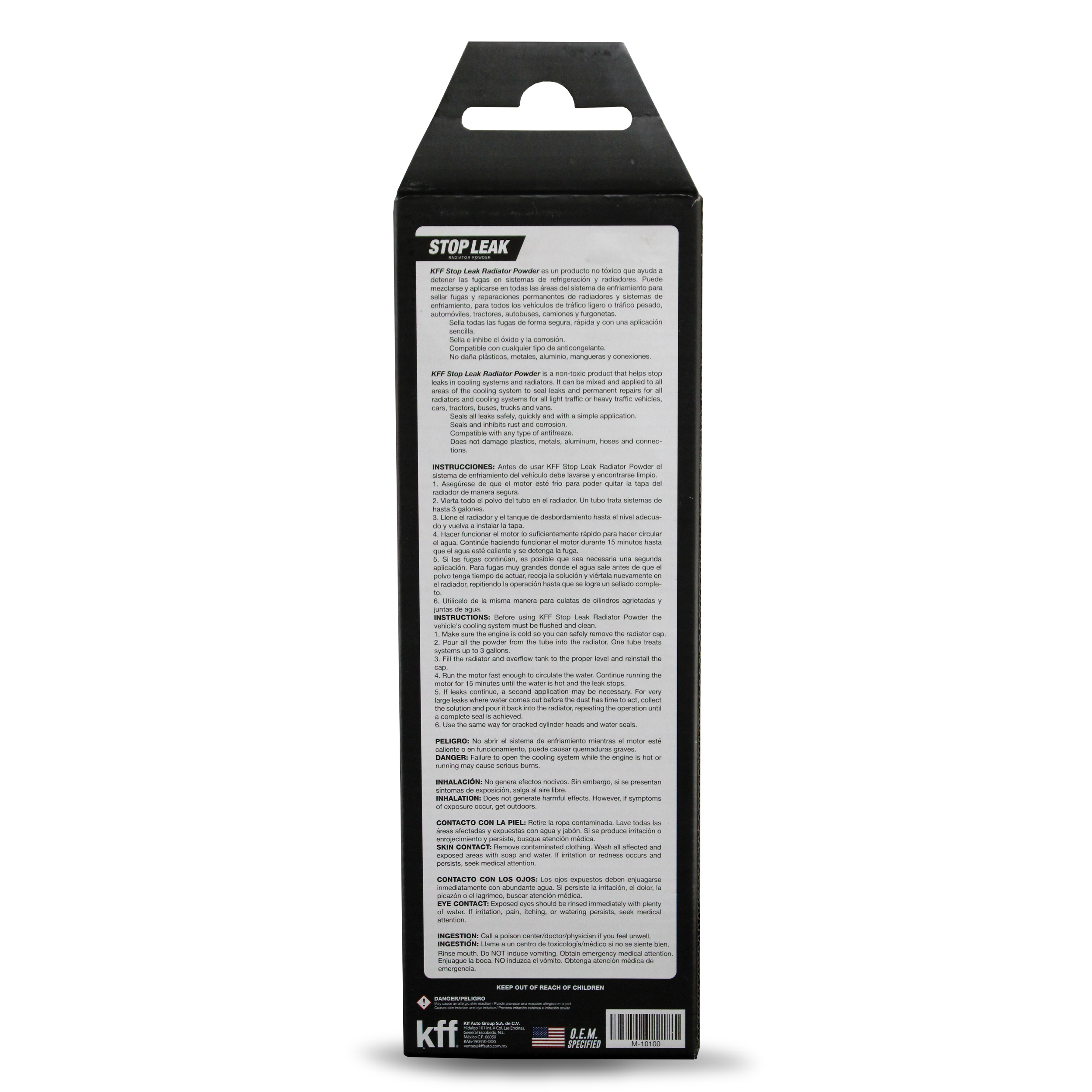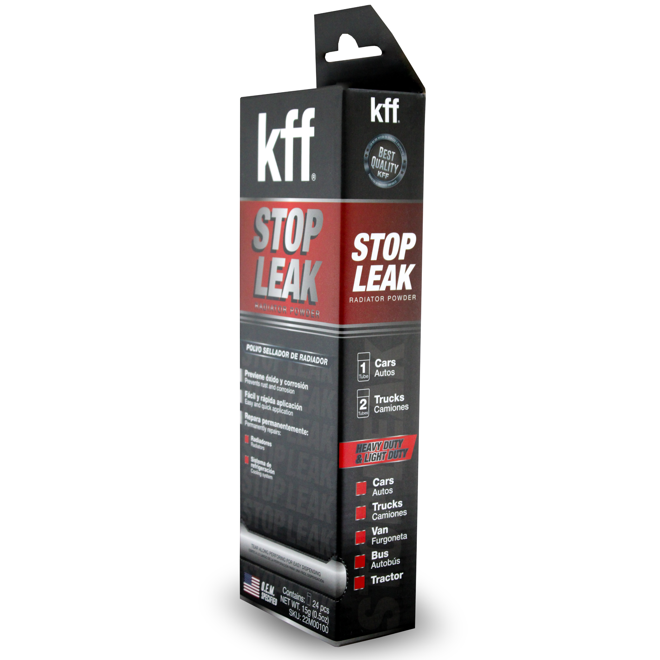 KFF Stop Leak Radiator Powder is a non-toxic product that helps stop leaks in cooling systems and radiators. It can be mixed and applied to all areas of the cooling system to seal leaks and provide permanent repairs to radiators and cooling systems for all light and heavy traffic vehicles, including cars, tractors, buses, trucks, and vans.PRESENTATIONS